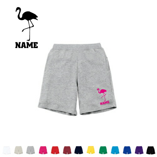 フラミンゴ 名入れスウェットハーフパンツ バスパン ハーパン スポーツ ダンス ジム フィットネス ショートパンツ 短パン 半ズボン コットン 綿100% flamingo