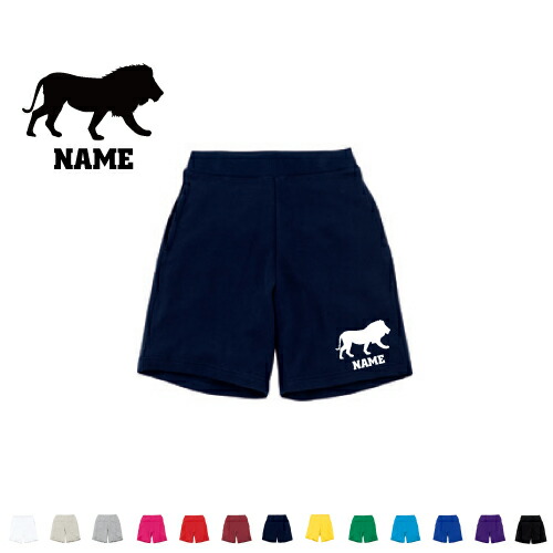 ライオン 名入れスウェットハーフパンツ バスパン ハーパン スポーツ ダンス ジム フィットネス ショートパンツ 短パン 半ズボン コットン 綿100% 百獣の王、leo、Lion