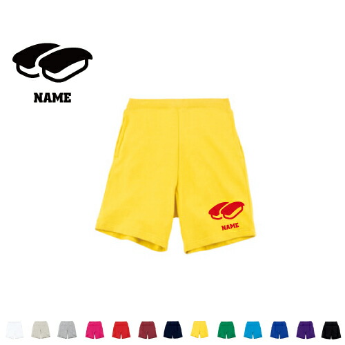 お寿司 名入れスウェットハーフパンツ バスパン ハーパン スポーツ ダンス ジム フィットネス ショートパンツ 短パン 半ズボン コットン 綿100% スウェット sushi、大トロ、中トロ、軍艦、わさび