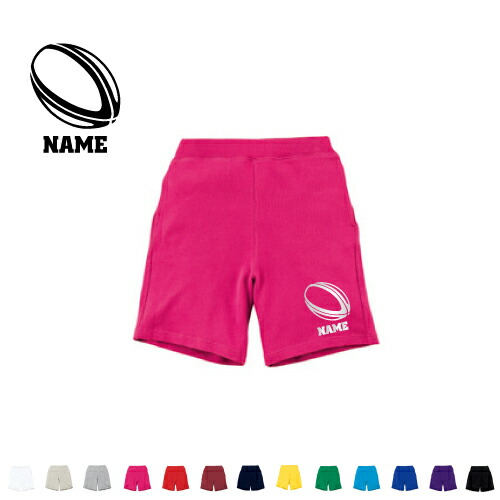 ラグビーボール 名入れスウェットハーフパンツ バスパン ハーパン スポーツ ダンス ジム フィットネス ショートパンツ 短パン 半ズボン コットン 綿100%