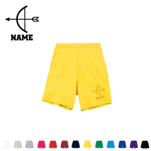 アーチェリー2 名入れスウェットハーフパンツ バスパン ハーパン スポーツ ダンス ジム フィットネス ショートパンツ 短パン 半ズボン コットン 綿100%弓 的 射る