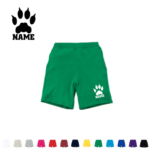 足跡4 名入れスウェットハーフパンツ バスパン ハーパン スポーツ ダンス ジム フィットネス ショートパンツ 短パン 半ズボン コットン 綿100%猫 ネコ ねこ キャット 肉球