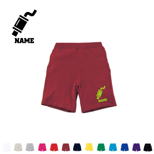 部品 マフラー 名入れスウェットハーフパンツ バスパン ハーパン スポーツ ダンス ジム フィットネス ショートパンツ 短パン 半ズボン コットン 綿100%乗り物 車 カスタム 趣味