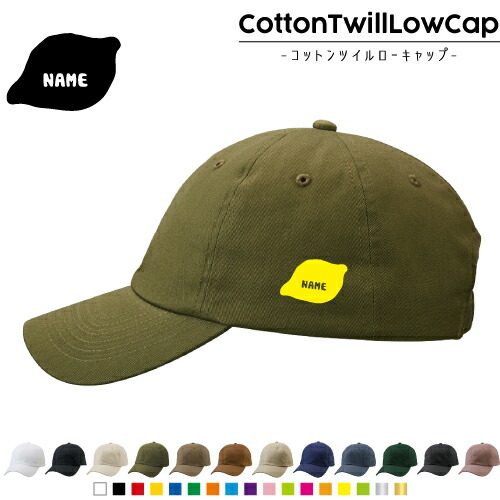 レモン /名入れコットンツイルローキャップ 定番 帽子 キャップ UVカット 熱中症対策 UV対策 日よけ ランニング アウトドア ジョギング 屋外 かわいい おしゃれ