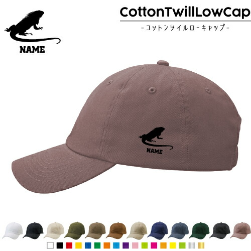 「イグアナ」 /名入れコットンツイルローキャップ 定番 帽子 キャップ UVカット 熱中症対策 UV対策 日よけ ランニング アウトドア ジョギング 屋外 かわいい おしゃれ 爬虫類