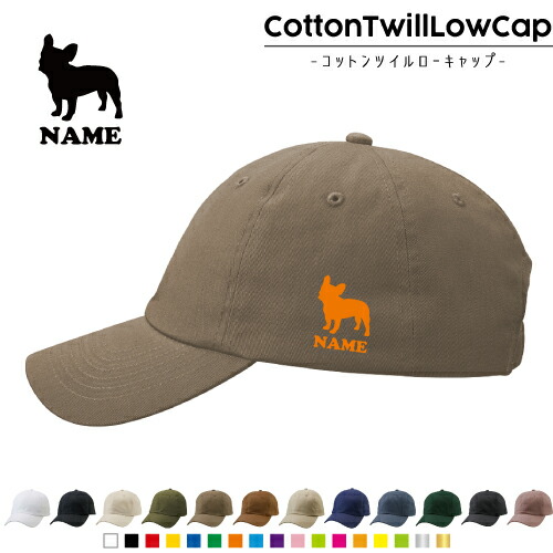 フレンチブルドッグ/名入れコットンツイルローキャップ 犬種別シルエット 定番 帽子 キャップ UVカット 熱中症対策 UV対策 日よけ ランニング アウトドア ジョギング 屋外 かわいい おしゃれ