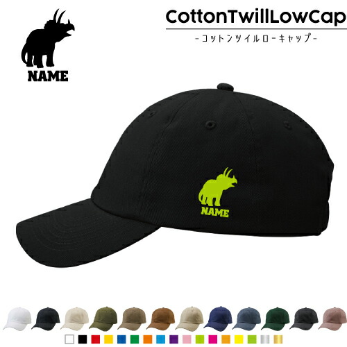トリケラトプス2 名入れコットンツイルローキャップ 定番 帽子 キャップ UVカット 熱中症対策 UV対策 日よけ ランニング アウトドア ジョギング 屋外 かわいい おしゃれ 恐竜 化石 肉食 草食 雑食 海 陸