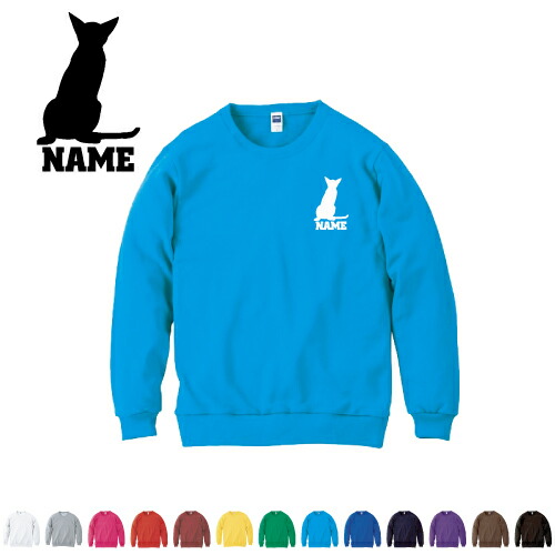 シャム 名入れクルーネックライトトレーナー 名入れスウェット 名入れトレーナー 名入れ 左胸ワンポイント スウェット 部活 卒業記念 卒部祝い チームウェア 記念 クラブ 猫 ネコ ねこ キャット ペット
