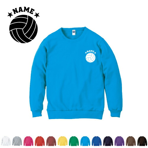 バレーボール/名入れクルーネックライトトレーナー 名入れスウェット 名入れトレーナースポーツシルエット名入れ 左胸ワンポイント スウェット 部活 卒業記念 卒部祝い チームウェア 記念 クラブ グッズ