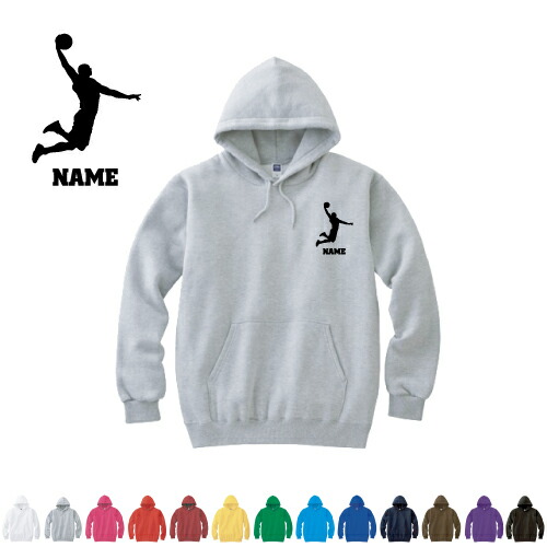 ダンクシュート/名入れフーデッドパーカー スポーツシルエット名入れ 左胸ワンポイント 部活 卒団記念品 母の日のプレゼント 卒部記念 卒団記念品 クラブ バスケットボール エアダンク【cf_mlh】 グッズ 名前入り