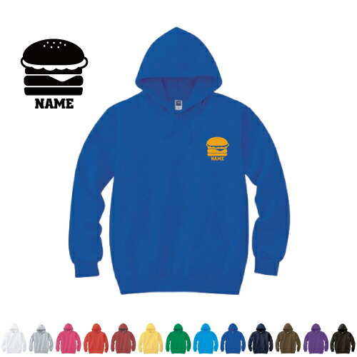 ハンバーガー 名入れフーデッドパーカー 左胸ワンポイント オリジナル セミオーダーメイド 名入れ 部活 サークル 卒団記念品 チームウェア お揃い 記念 クラブ【cf_mlh】