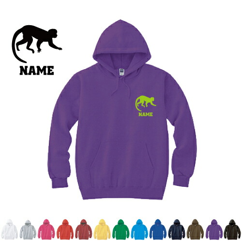 サル/名入れフーデッドパーカー 左胸ワンポイント オリジナル セミオーダーメイド 名入れ 部活 サークル 卒団記念品 チームウェア 猿 モンキー お揃い 記念 クラブ【cf_mlh】