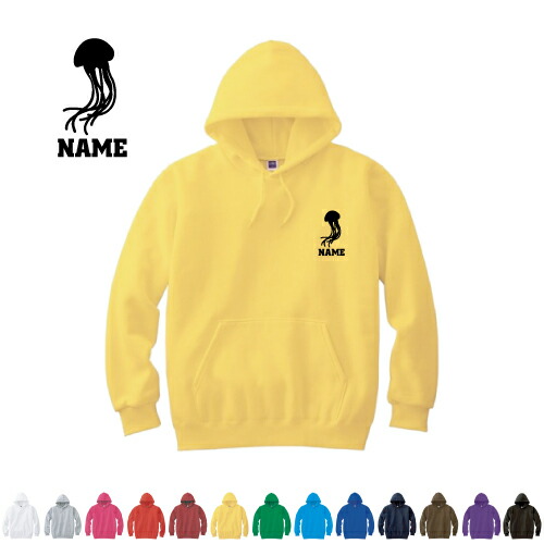 「くらげ」名入れフーデッドパーカー 左胸ワンポイント オリジナル セミオーダーメイド 名入れ 部活 母の日のプレゼント 父の日プレゼント お揃い クラスパーカー フードパーカー 【cf_mlh】アイテム 海月 Jellyfish