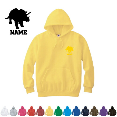 トリケラトプス1 名入れフーデッドパーカー パーカー おしゃれ フード スウェット地 名入れ 左胸ワンポイント【cf_mlh】恐竜 化石 肉食 草食 雑食 海 陸