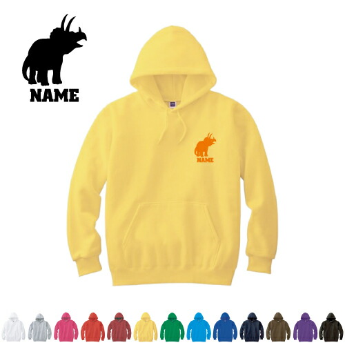 トリケラトプス2 名入れフーデッドパーカー パーカー おしゃれ フード スウェット地 名入れ 左胸ワンポイント【cf_mlh】恐竜 化石 肉食 草食 雑食 海 陸
