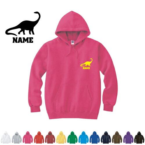 ブロントサウルス 名入れフーデッドパーカー パーカー おしゃれ フード スウェット地 名入れ 左胸ワンポイント【cf_mlh】恐竜 化石 肉食 草食 雑食 海 陸