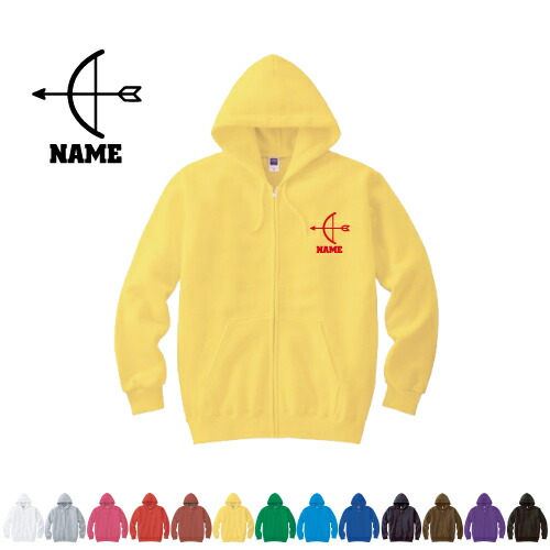 アーチェリー2 名入れジップアップパーカー 名入れ フードパーカー 左胸ワンポイント スウェット 部活 卒団記念品 卒業記念 卒部祝い 記念 クラブ トレッキング あったかい カジュアル シンプル 【cf_mlz】弓 的 射る