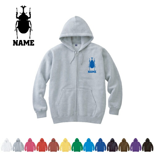 「カブトムシ」名入れジップアップパーカー フードパーカー スウェット イージー ワイド 韓国風 部屋着 普段着 メンズ レディース ZIP フード付き 大きいサイズ 小さいサイズ あったかい カジュアル シンプル 【cf_mlz】 昆虫