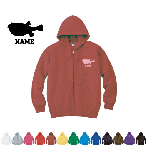 「フグ」名入れジップアップパーカー フードパーカー スウェット イージー ワイド 韓国風 部屋着 普段着 メンズ レディース ZIP フード付き 大きいサイズ 小さいサイズ あったかい カジュアル シンプル 【cf_mlz】 河豚、鰒、?、?、?、?、ふぐ刺し