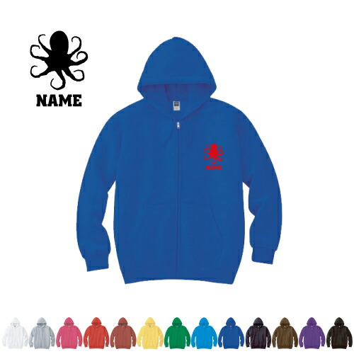 「タコ」名入れジップアップパーカー フードパーカー スウェット イージー ワイド 韓国風 部屋着 普段着 メンズ レディース ZIP フード付き 大きいサイズ 小さいサイズ あったかい カジュアル シンプル 【cf_mlz】 刺身、寿司、タコ焼き、軟体動物、Octopus