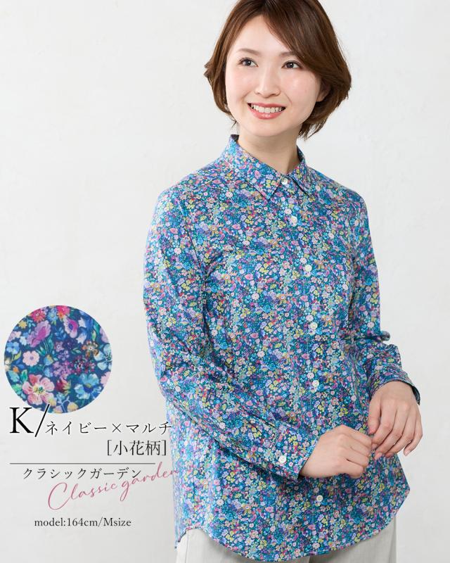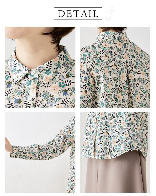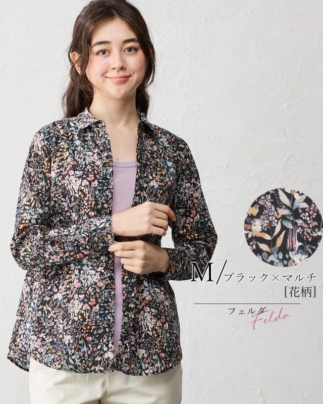 リバティ LIBERTY シャツ 日本製 花柄 フラワー 草花 ボタニカル プリント 綿100% コットン 綿 シャツ ブラウス 羽織 2way 重ね着 レイヤード 長袖 ファッション レディース 女性 フォーマル お出かけ 春 冬 秋 トップス カジュアル リバティ生地 4180919