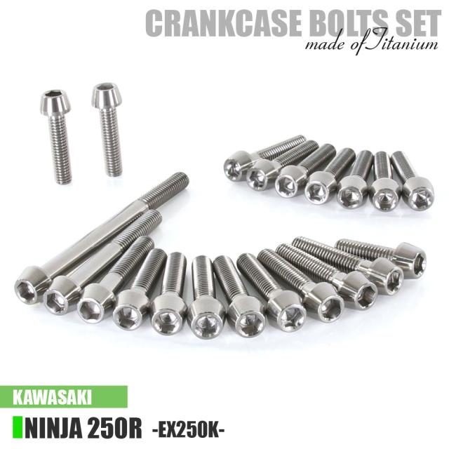 チタンボルト カワサキ ニンジャ250R専用 EX250K クランクケース エンジンカバー ボルト セット 21本 シルバー 軽量化 カスタム ネジ レストア