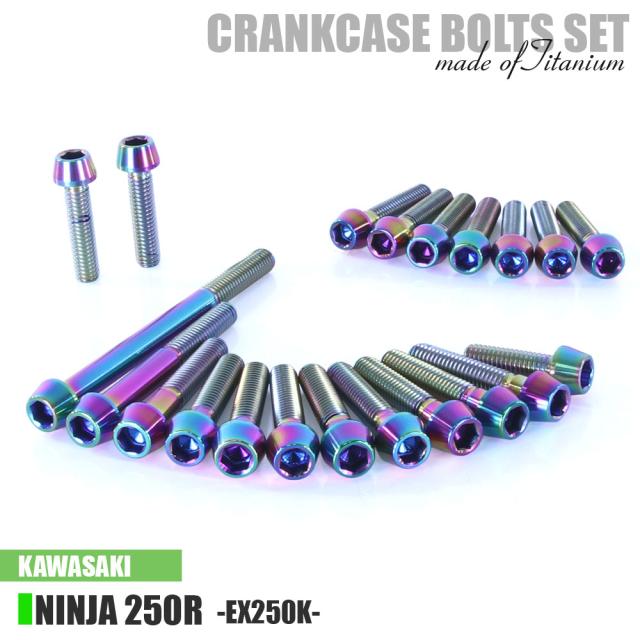 チタンボルト カワサキ ニンジャ250R専用 EX250K クランクケース エンジンカバー ボルト セット 21本 焼き色 軽量化 カスタム ネジ レストア