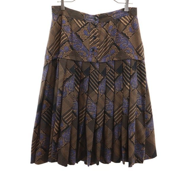 総柄 ロング丈 プリーツスカート ブラウン系 レディース