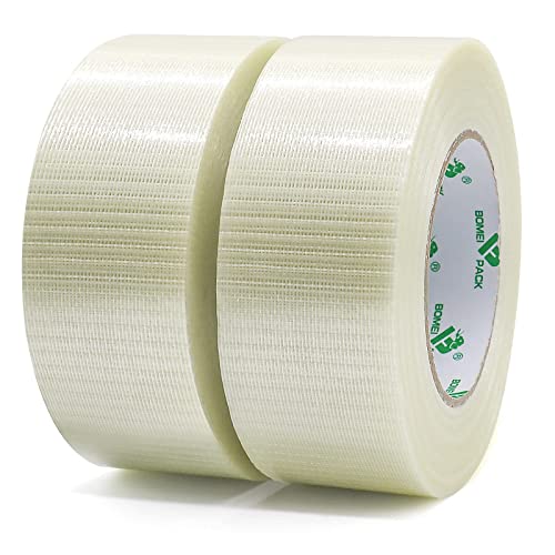 BOMEI PACK ガラス繊維テープ透明強力接着剤ガムテープ強化フィラメントテープ、頑丈なパッキング用の修理テープガラス繊維テープ50mmx25