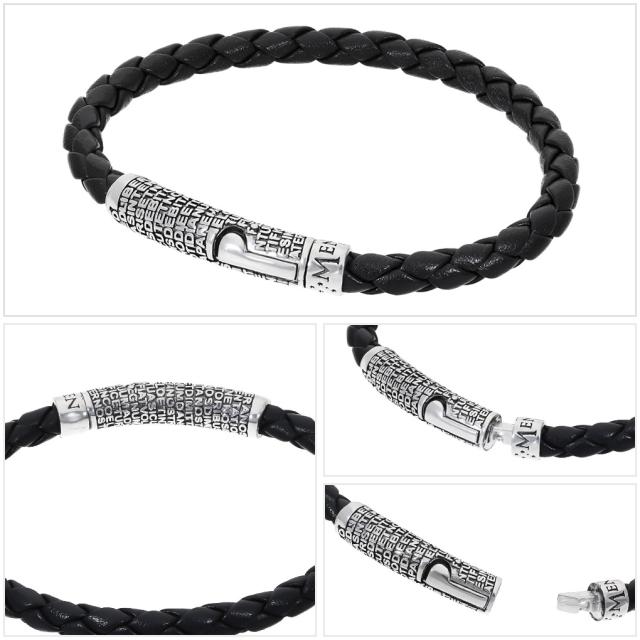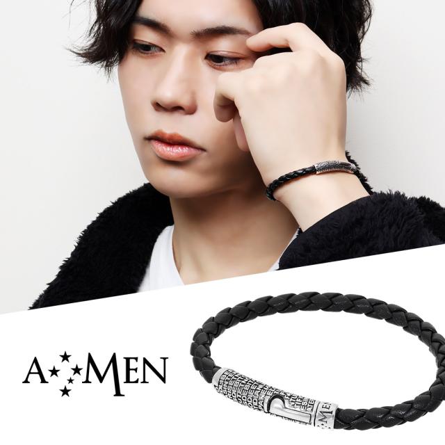 AMEN アメン 主の祈り シルバー 編み込み レザーブレスレット 19.5cm〜20.5cm ブランド シルバー925 ブレスレット ラテン語 キリスト 祈り 教会