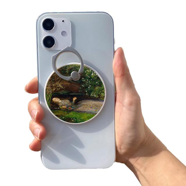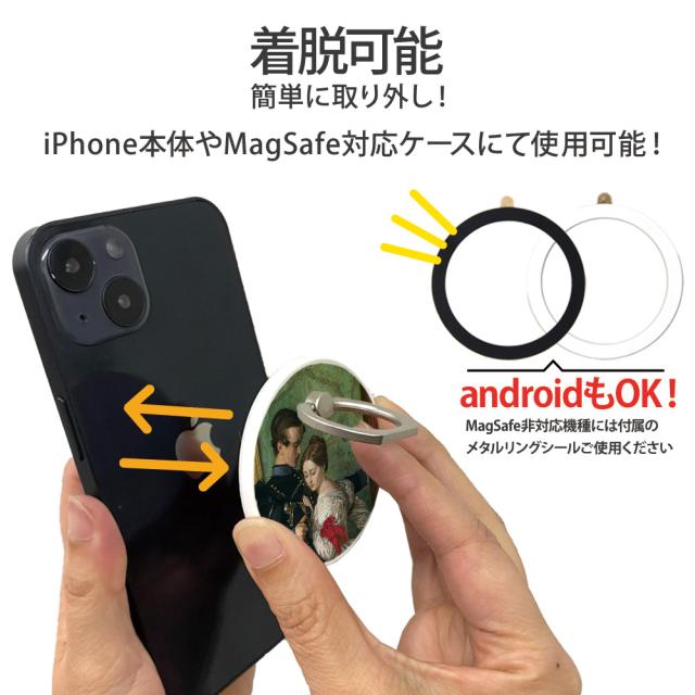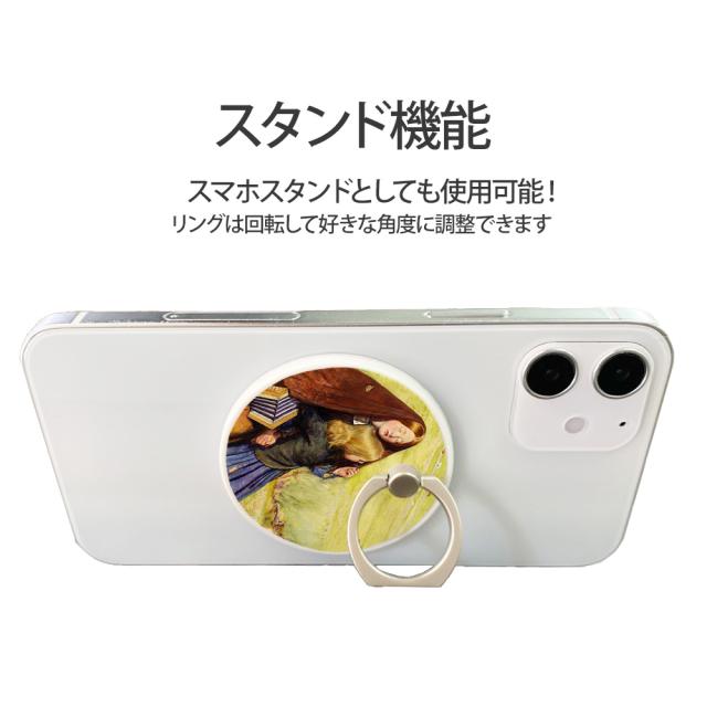 スマホリング MagSafe対応 メタルリング付き 落下防止 片手操作 180度 360度 回転 マグセーフ magsafe デザイン ジョン・エヴァレット・ミレー 携帯 リング ホルダー 指 かけ 薄型 マグネット 磁石 フィンガーリング iPhone15リング エヴァレットミレイ オフィーリア マリアナ 盲目の少女 黒きブランズウィック騎兵隊員