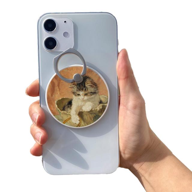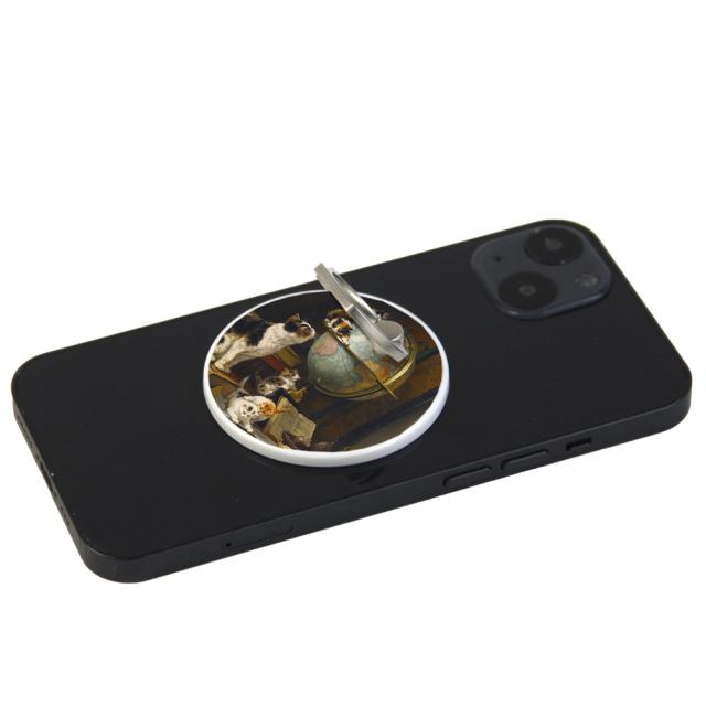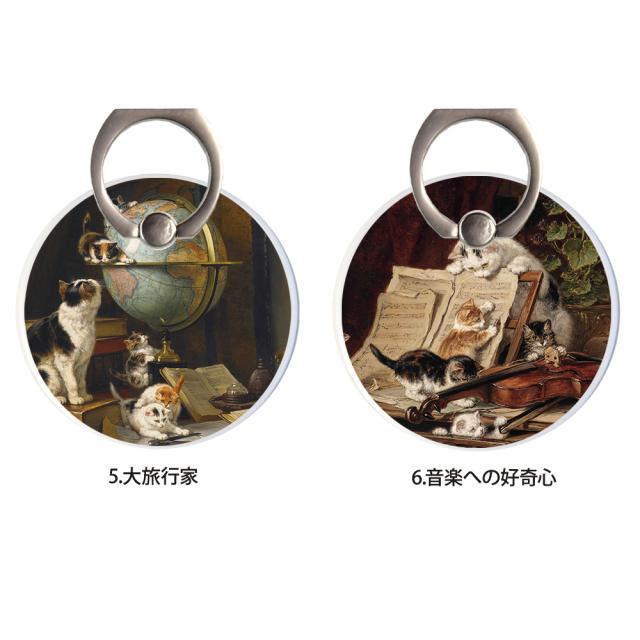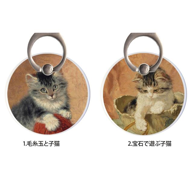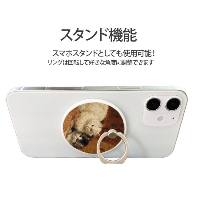 スマホリング MagSafe対応 メタルリング付き 落下防止 片手操作 180度 360度 回転 マグセーフ magsafe デザイン ヘンリエッタ・ロナー=クニップ 携帯 リング ホルダー 指 かけ 薄型 マグネット 磁石 フィンガーリング iPhone15リング 猫 ネコ ねこ 毛糸玉と子猫 宝石で遊ぶ子猫 無邪気 母猫と手鏡で遊ぶ子猫たち 大旅行家 音楽への好奇心 クッションの上の二匹の猫 遊んでいる猫