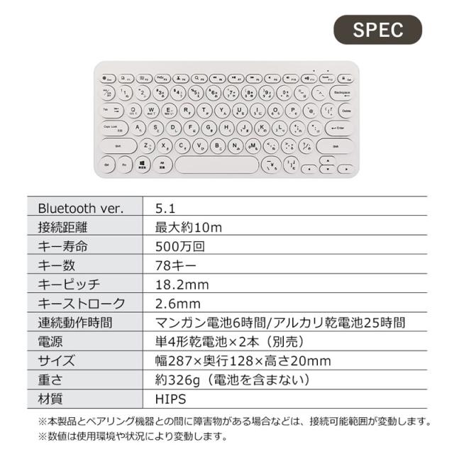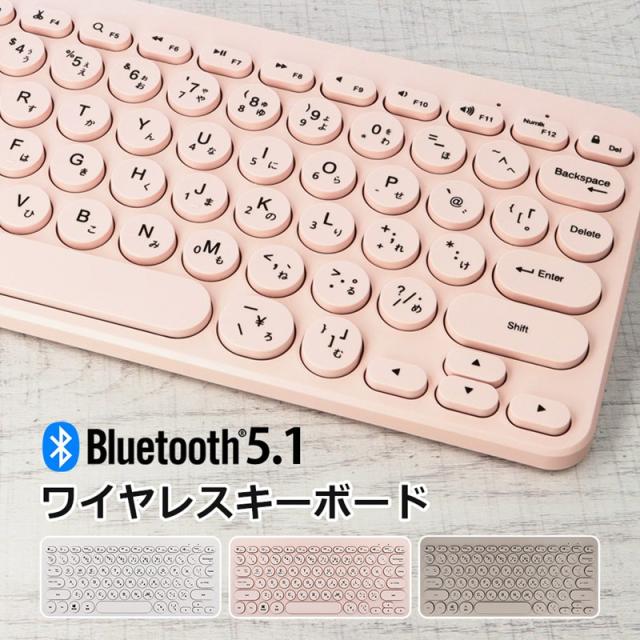 ワイヤレスキーボード 丸ボタン タイプライター風 Bluetoothキーボード Bluetooth 5.1 キーボード ワイヤレス 小型 スリム 薄型 コンパクト PC Windows スマホ android iPad iPhone 無線 電池式 軽量 静音 可愛い ピンク モカ ナチュラル ニュアンス