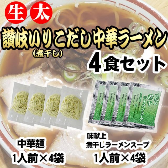 送料無料 讃岐いりこラーメン ラーメン 4食 ご当地 讃岐いりこ(煮干し)だし 生太麺 中華ラーメン 4食セット 麺130gX4袋 スープ×4袋 食品 生麺 M