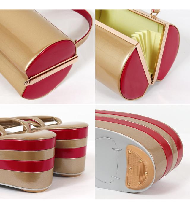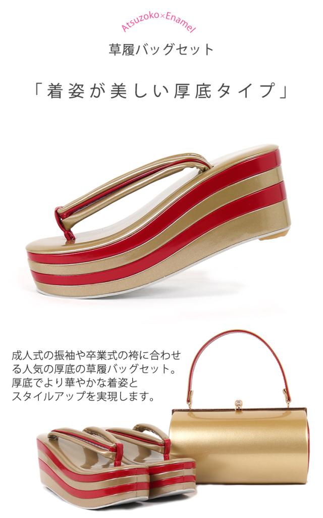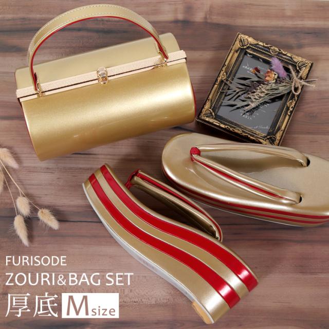 草履バッグセット 振袖用 厚底 成人式 結婚式 卒業式 和服バッグ 和服ぞうり 着物 草履バッグ 草履 バッグ エナメル 草履バッグ 金 ゴールド かわいい Mサイズ 送料無料 z6915