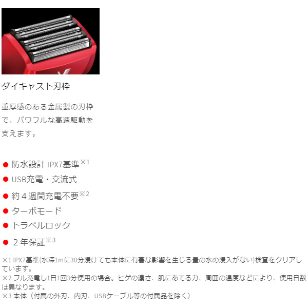 ※3 本体(付属の外刃、内刃、USBケーブル等の付属品を除く)