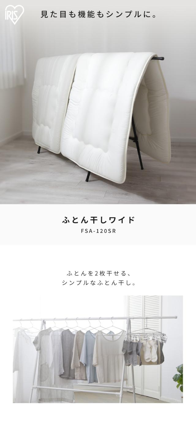 ★レビュー投稿でポイント還元★ 布団干し アイリスオーヤマ 布団干しスタンド ワイド 洗濯物干し 折りたたみ 収納 布団2枚分 ベランダ 屋外 軽量 組立簡単 工具不要 室内 物干し 部屋干し 梅雨 除湿機 サーキュレーター 花粉 白 黒 一人暮らし 防犯 ふとん干し FSA-120SR *
