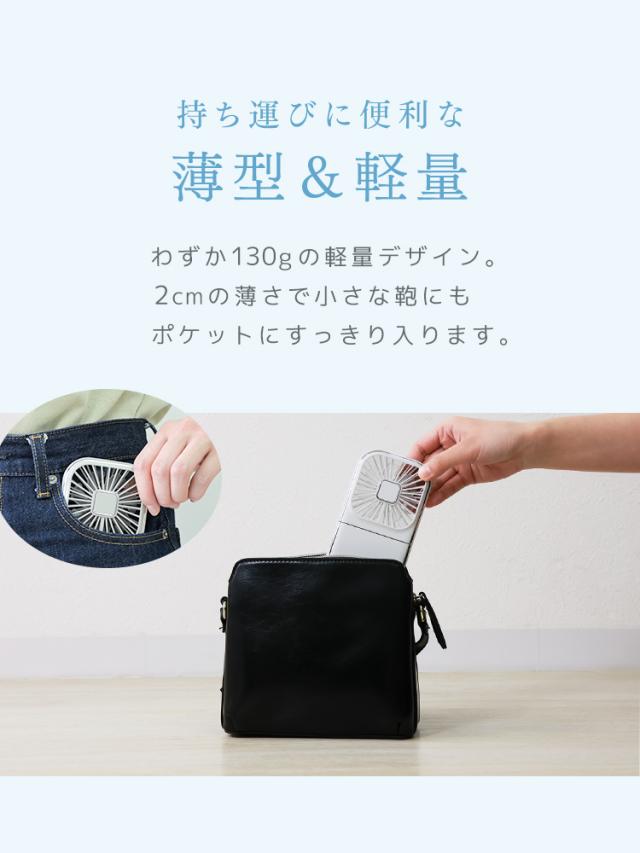 たった130gで軽い!暑さを感じた時、直接顔や首に風を当てて涼めます。