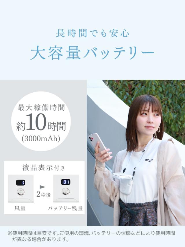 - 夏の後半から使い始めたのですが、風量もいくつかに分かれて調整出来るし、何より「あとどのくらい充電が保つか」が可視化されてあるのが気に入りました。