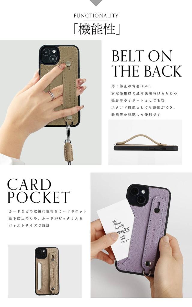 2024年新モデルとしてベルト付きケースに待望のシュリンクレザータイプが登場。当店人気のベルト付きタイプ、「ベルトなしには戻れない」とリピート買いのお声も多く頂戴しております。今回、手帳型タイプに使われているようなシュリンクレザーを希望のご要望にお応えして、新色のくすみパープルを加えたADVANCEタイプのレザーを使用。背面のベルトは使用時の安定感に加え、落下防止にも活躍。写真撮影等のサポートとしても◎お揃いの革を使用した付属のショルダーストラップを使えばうっかり落としそうになった際も安心。あると便利なカードポケットも勿論、反映しました。