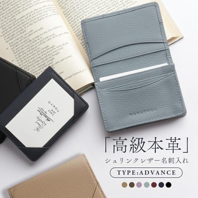 従来品の[STANDARD]から新色を加えた新タイプの[ADVANCE]が登場。最高級の牛革を使用したシンプルかつ精巧な作りの名刺入れ。実用的な収納力とスマートさのバランスを考え、収納力は40枚程度に設定。底まで折りマチが通っているので全体が薄い箱型になり、名刺をすっきりと収められます。