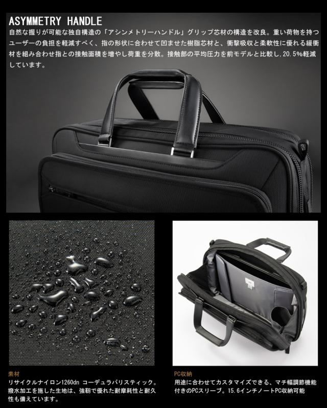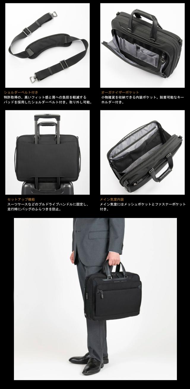 機能一覧:1気室/B4ファイル収納/PC収納(15.6inch)/ショルダーベルト/セットアップ機能/エキスパンダブル(マチ拡張)機能