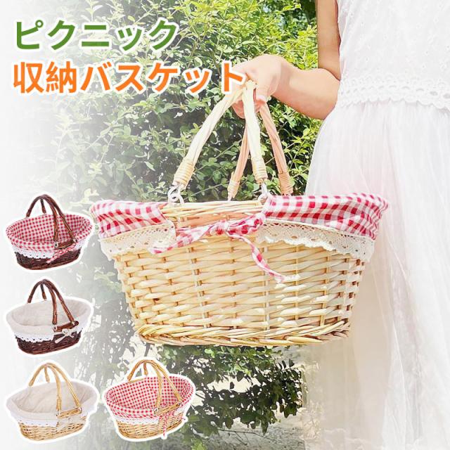 ピクニックバスケット ピクニック バスケット カゴ収納 プラスチック 持ち手 ランチバスケット 2ハンドル 海水浴 キャンプ アウトドア【ピクニックに可愛い】