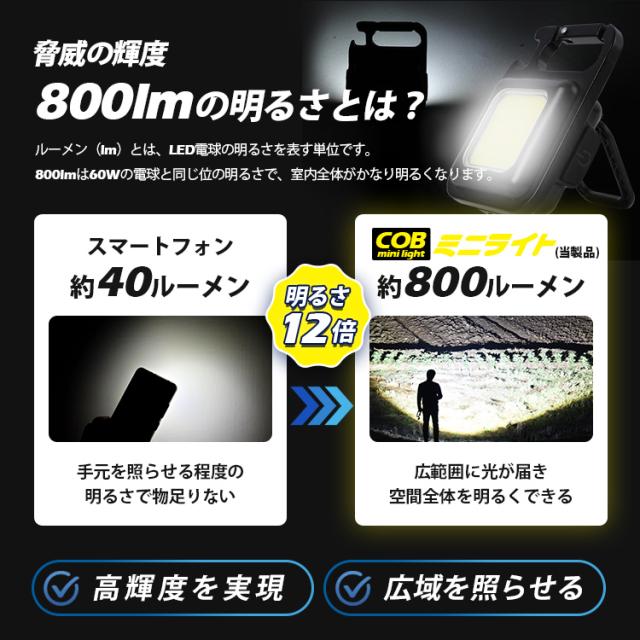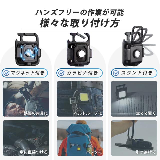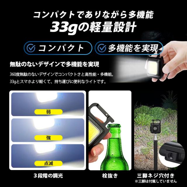 懐中電灯 COB ライト ミニライト ミニ投光器 TypeC 作業灯 投光器 充電式 高輝度 800lm マグネット式 USB充電 屋外 防水 小型 カラビナ せん抜き キャンプ COBライト 三脚 軽量 アウトドア 非常用 防災グッズ キーホルダー 防災ライト 屋外 防水 非常用 防災グッズ アウトドア