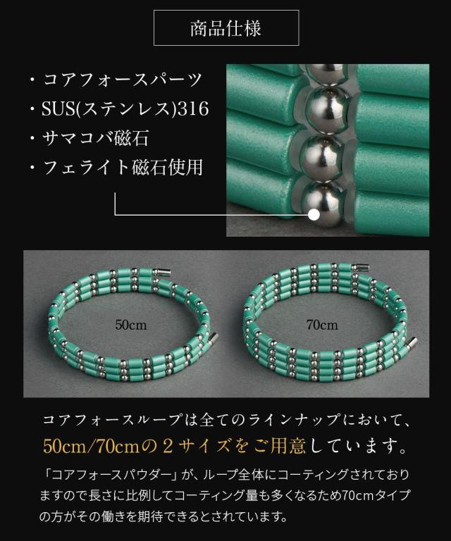 【ラッピング付】 コアフォース ループ サス SUS 50 50cm PEARL MINT パール ミント ネックレス ブレスレット アンクレット アクセサリー 体幹 ゴルフ スポーツ アスリート 藤波晋太郎 古江彩佳 中嶋常幸 勝みなみ プロゴルファー プロ野球選手 コアホース COREFORCE
