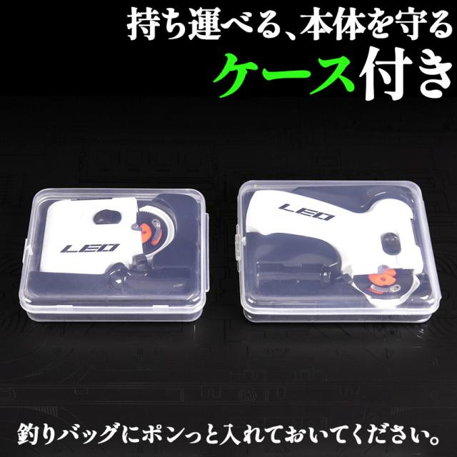 ■持ち運びしやすく、ケース付きの乾電池式の薄型釣り針結び器です。