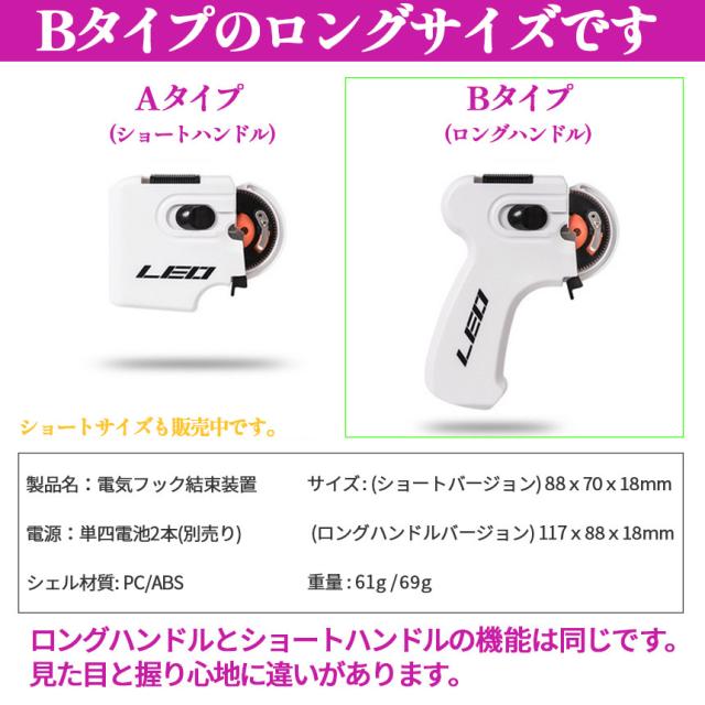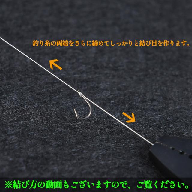 使い方は、ぜひ動画をご覧ください♪■適合ハリサイズ(目安):丸セイゴ5~14号/伊勢尼1~15号/グレ3~7号/チヌ1~9号/マダイ7~13号/カワハギ(スピード)7~8号/カレイ8~16号/狐0.8~10号/袖2~12号/ヘラスレ2~10号■持ち運びしやすく、ケース付きの乾電池式の薄型釣り針結び器です。■初心者でも安心!自動だから、釣り針結びが楽々!■ピストル型だから、握りやすい!