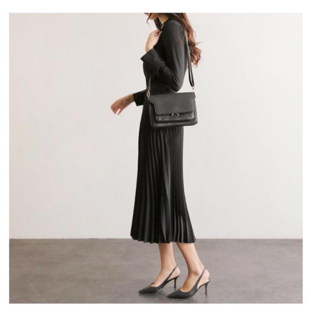 | 上品なこなれ感を醸すプリーツワンピース 膝が隠れる上品な丈感と、落ち感のある生地でスマートな縦ラインを演出。 Vネックが上身シルエットもすっきりに、下身をフレアシルエットに、ボディラインを美しく魅せてくれます。 ウエストリボン付きでハイウエスト&くびれ効果もアップ。 | |