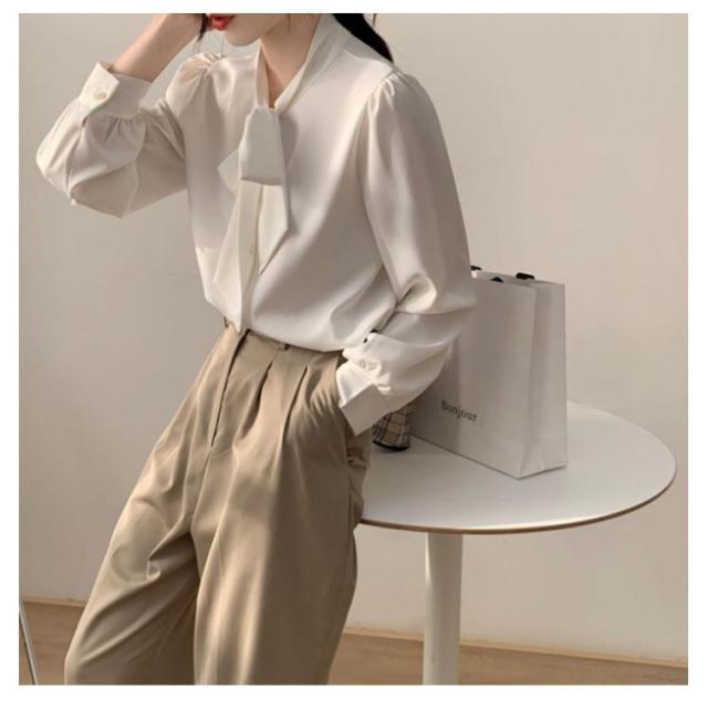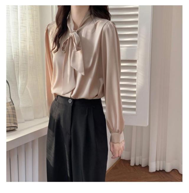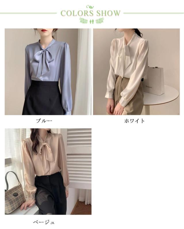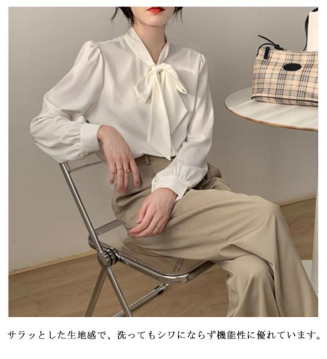 リボン ボウタイ 長袖 ボウタイブラウス シフォンシャツ 春 トップス ブラウス シフォンブラウス フォーマル ゆったり カジュアル 大きいサイズ オフィス 秋 無地 フォーマルブラウス 30代 20代 シンプル 40代 50代 通勤 OL ママ レディース