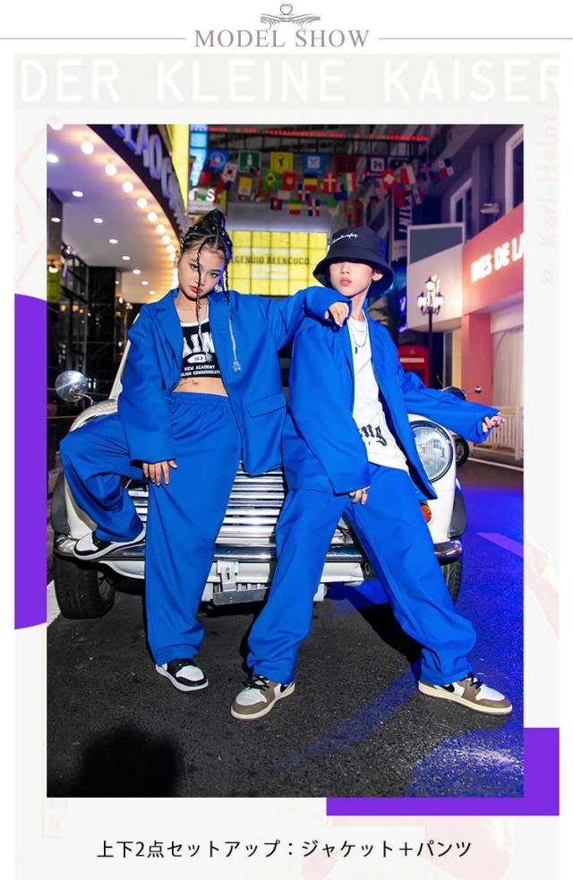 ダンス衣装 キッズ ロックダンス衣装 パンツスーツ 上下セット セットアップ ジャズ スーツ ジャケット 男の子 女の子 ボーイズ ガールズ ジュニア ジャケット ロングパンツ イージーパンツ ウェストゴム 韓国 K-POP